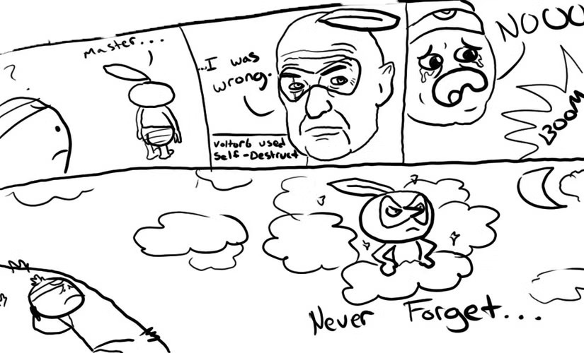 But even Pokémon’s game-imposed limits do not go far enough for me. In 2010, a procrastinating student invented a new way to play the game: the Nuzlocke. If you’re interested enough in Pokémon to have gotten to the 9th paragraph of this post, you probably already know what that is, but for those unacquainted, it is basically the totally self-imposed “hardcore mode” for Pokémon. First, it limits which Pokémon you could catch to only the first Pokémon you find in each new area. Second, it adds lethality to Pokémon. In the base game, there is universal healthcare. Your Pokémon runs out of hit points? No big deal, just bring them to one of the many hospitals dotting the landscape and they’ll be good as new. All your Pokémon run out of hit points? You may lose some money and have to retrace your steps from the last hospital you had visited, but all your Pokémon are patched back up. Not so in a Nuzlocke run. When a Pokémon faints, you must release it. It’s dead. Per the concept’s creator, it had an unintended effect: “The results were unexpected; rather than simply increasing the difficulty, these rules caused him to care for his monster companions more than ever before. He found new appreciation for Pokemon he would have previously never bothered to capture, and he worried deeply for his team, knowing any knockout would mean goodbye.”